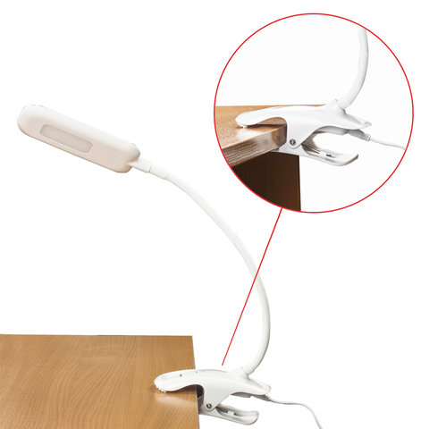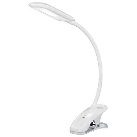 Настольный светильник высотой 31,5 см представлен в классическом белом дизайне, благодаря которому гармонично впишется в офисный или домашний интерьер. Устройство оснащено легким пластиковым корпусом на прищепке и яркой LED- матрицей на 8 Вт. Вы будете довольны освещением с цветовой температурой от 4700 до 6000 K и световым потоком 350 Лм, которое обеспечивают 12 светодиодов. Прибор оснащен сенсорным выключателем. Благодаря 3 режимам свечения можно самостоятельно выбрать яркость света.