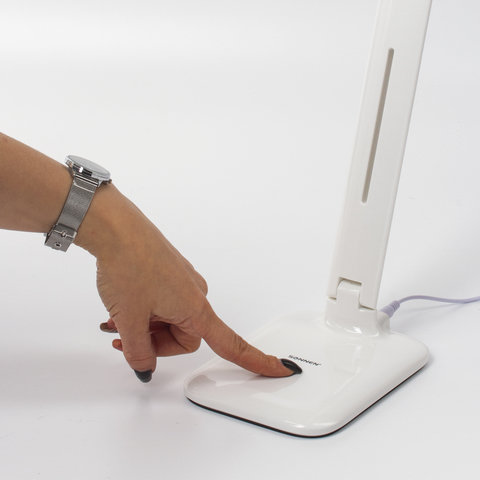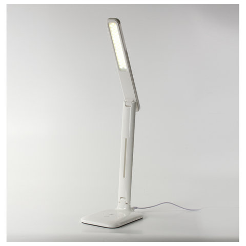 Настольный светильник высотой 33.3 см представлен в классическом белом дизайне, благодаря которому гармонично впишется в офисный или домашний интерьер. Устройство оснащено легким пластиковым корпусом и яркой LED-матрицей на 8 Вт. Вы будете довольны освещением с цветовой температурой от 3500 до 4500 K и световым потоком 350 Лм, которое обеспечивают 42 светодиода. Прибор оснащен сенсорным выключателем. Благодаря 3 режимам свечения можно самостоятельно выбрать яркость света.