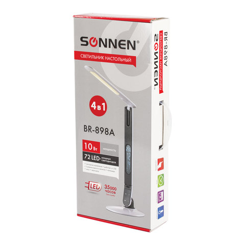 Настольная лампа-светильник SONNEN BR-898A прекрасно подойдет для школьника, студента и офисного сотрудника. Также данный светильник оборудован дополнительными функциями: календарь, часы, термометр.
