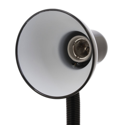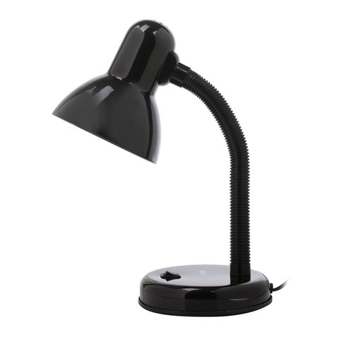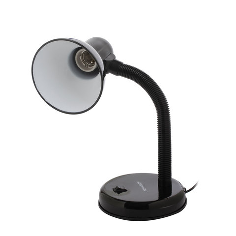 Для светильника высотой 31 см подходит любая технология бытовых ламп (накаливания, люминисцентная, светодиодная) с цоколем Е27, благодаря чему можно самостоятельно выбрать яркость и оттенок света. При использовании лампы накаливания, максимальная мощность не должна превышать 40 Вт. Корпус из пластика представлен в предельно простом черном дизайне, благодаря которому он гармонично впишется в офисный или домашний интерьер.