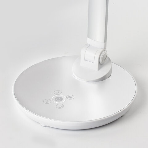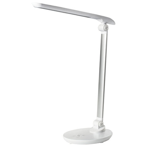 Настольный светильник высотой 44,5 см представлен в классическом белом дизайне, благодаря которому гармонично впишется в офисный или домашний интерьер. Устройство оснащено легким металлическим корпусом и яркой LED-матрицей на 10 Вт. Вы будете довольны освещением с цветовой температурой от 2700 до 6000 K и световым потоком 600 Лм, которое обеспечивают 72 светодиода. Прибор оснащен сенсорным выключателем. Благодаря 3 режимам свечения можно самостоятельно выбрать яркость света.