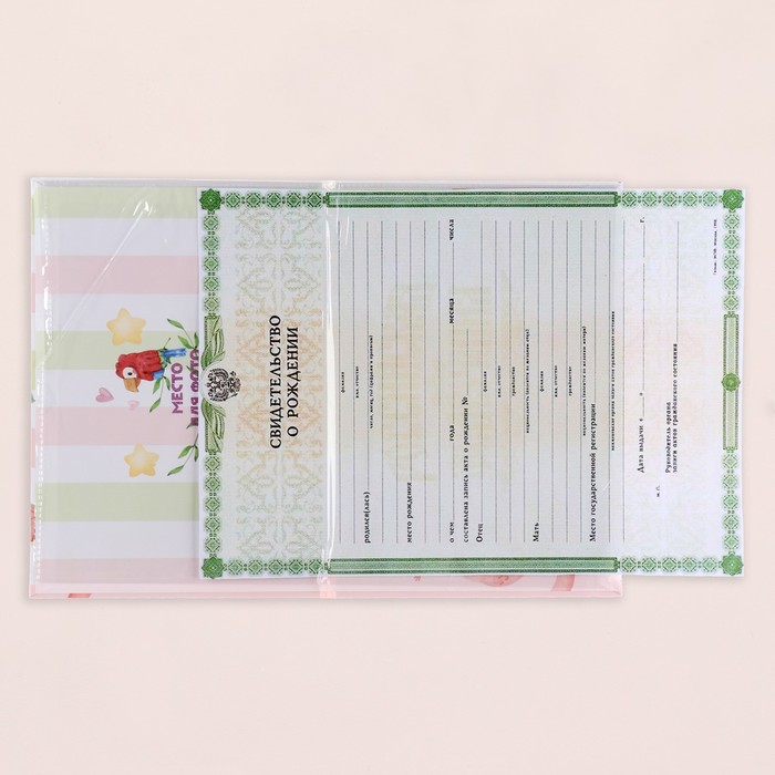 Папка для свидетельства о рождении "Наша малышка", розовая для девочки, 23,1х30,7см