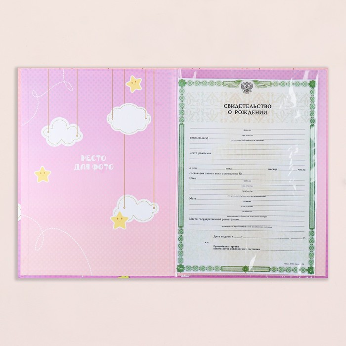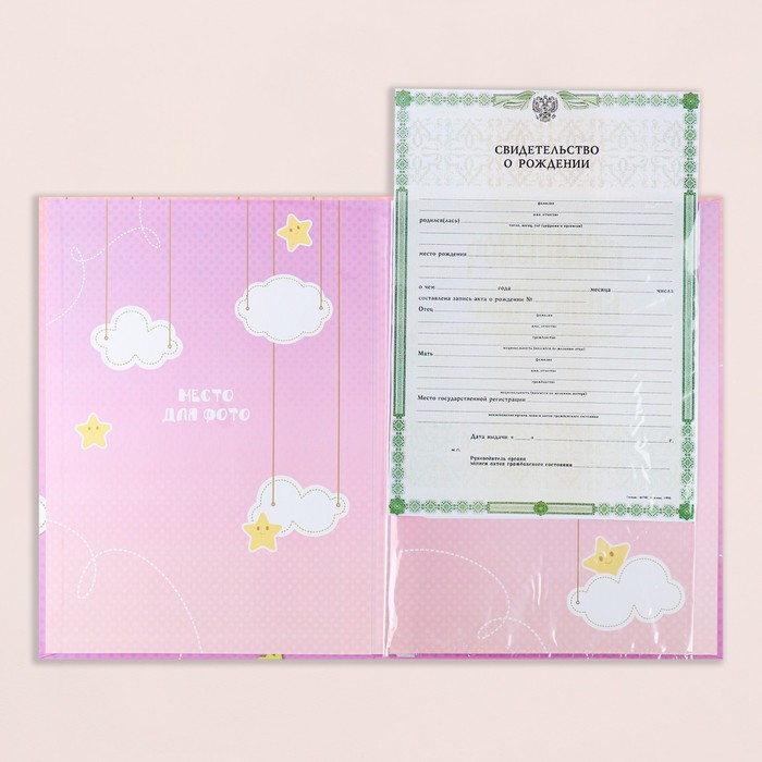 Папка для свидетельства о рождении "Наша малышка", розовая для девочки, 23,1х30,7см