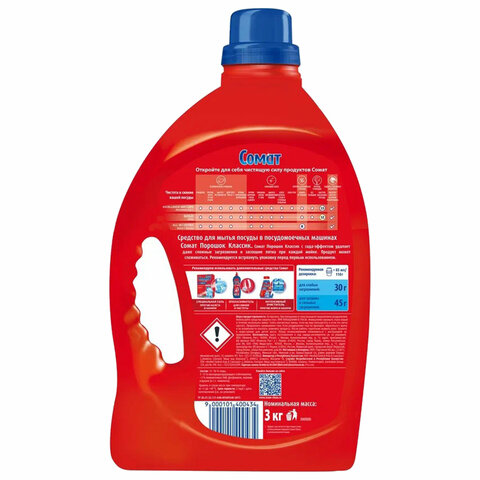 Сомат Порошок Классик с сода-эффектом удаляет даже сложные загрязнения и засохшие пятна при каждой мойке. Для достижения оптимального результата рекомендуется использовать также Ополаскиватель и Соль Сомат.