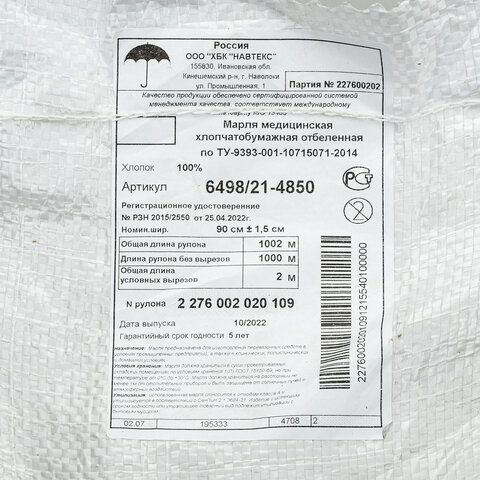 | Вид технической ткани | марля |