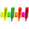 4 неоновых цвета в наборе: желтый, зеленый, оранжевый, розовый. Плоская форма корпуса диаметром 25 мм. Скошенный наконечник имеет толщину линии письма от 1 до 5 мм, что обеспечивает удобство при работе с текстом, напечатанным мелким шрифтом, или таблицами. Текстовыделитель обладает экономным расходом чернил. Светоустойчивые чернила на водной основе не выцветают даже на открытом солнце и не размазываются в процессе использования. Изделие не перезаправляется. Колпачок с клипом и соответствует цвету чернил.