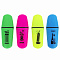 Текстовыделители неоновых цветов: желтый, зеленый, розовый, голубой, имеют овальную форму корпуса, диаметр которого 27 мм. Скошенный наконечник имеет толщину линии письма от 1 до 5 мм, что обеспечивает удобство при работе с текстом, напечатанным мелким шрифтом, или таблицами. Благодаря особой водной основе чернил текстовыделитель не высыхает без колпачка в течение 4 часов. Текстовыделитель обладает экономным расходом чернил, при этом длина линии письма достигает 250 метров. Чернила быстро впитываются и тем самым предотвращают размазывание в процессе использования. Цвет колпачка и корпуса текстовыделителя соответствует цвету чернил. Поставляются в тубе по 50 штук, отлично подходят для размещения в розничном магазине.