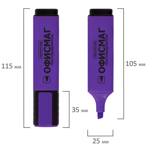 Текстовыделитель фиолетового цвета обладает плоской формой корпуса диаметром 25 мм. Скошенный наконечник имеет толщину линии письма от 1 до 5 мм, что обеспечивает удобство при работе с текстом, напечатанным мелким шрифтом, или таблицами. Текстовыделитель обладает экономным расходом чернил. Светоустойчивые чернила на водной основе не выцветают даже на открытом солнце и не размазываются в процессе использования. Изделие не перезаправляется. Цвет клипа и корпуса соответствует цвету чернил.
