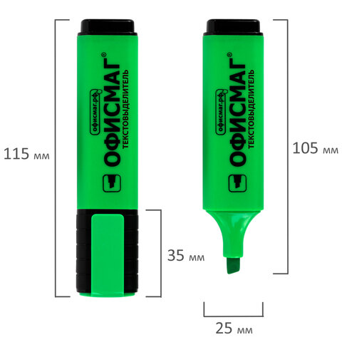Текстовыделитель зеленого цвета обладает плоской формой корпуса диаметром 25 мм. Скошенный наконечник имеет толщину линии письма от 1 до 5 мм, что обеспечивает удобство при работе с текстом, напечатанным мелким шрифтом, или таблицами. Текстовыделитель обладает экономным расходом чернил. Светоустойчивые чернила на водной основе не выцветают даже на открытом солнце и не размазываются в процессе использования. Изделие не перезаправляется. Цвет клипа и корпуса соответствует цвету чернил.