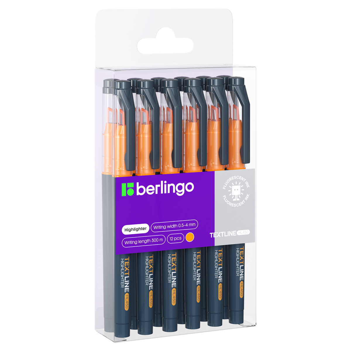 Текстовыделители Berlingo Textline HL450 - жемчужина ассортимента ТМ Berlingo. Прозрачный пишущий узел, выполненный из специального PMMA пластика, позволяет видеть необходимый текст и точно позиционировать выделитель. Корпус модели выполнен в оригинальном дизайне Modern в цвет чернил. Прозрачный колпачок позволяет легко увидеть ключевую особенность модели, а удобный пластиковый клип - закрепить текстовыделитель на кармане, папке, ежедневнике или блокноте. <br/>Упакованы текстовыделители в прозрачный пластиковый пенал, наглядно демонстрирующий все преимущества модели. Каждый пенал дополнительно оснащен европодвесом. <br/>- Цвет чернил: оранжевый<br/>- Толщина линии: 0,5-4 мм<br/>- Длина письма: 300 м.<br/>- Количество штук в упаковке: 12<br/>- Тип упаковки: пластиковый пенал