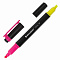 Двусторонний текстовыделитель неоновых цветов - желтый/розовый - обладает круглой формой корпуса диаметром 11 мм. Корпус тектовыделителя оснащен удобной зоной захвата. Скошенный наконечник имеет толщину линии письма от 1 до 4 мм, что обеспечивает удобство при работе с текстом, напечатанным мелким шрифтом, или таблицами. Текстовыделитель обладает экономным расходом чернил. Светоустойчивые чернила на водной основе не выцветают даже на открытом солнце и не размазываются в процессе использования. Изделие не перезаправляется. Цвет клипа соответствует цвету чернил.