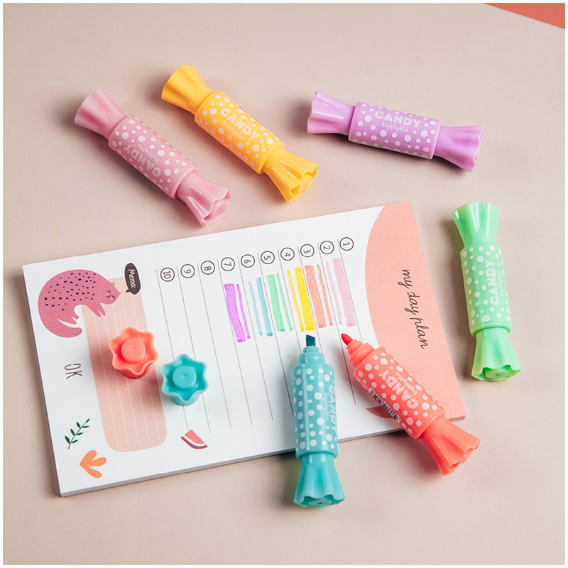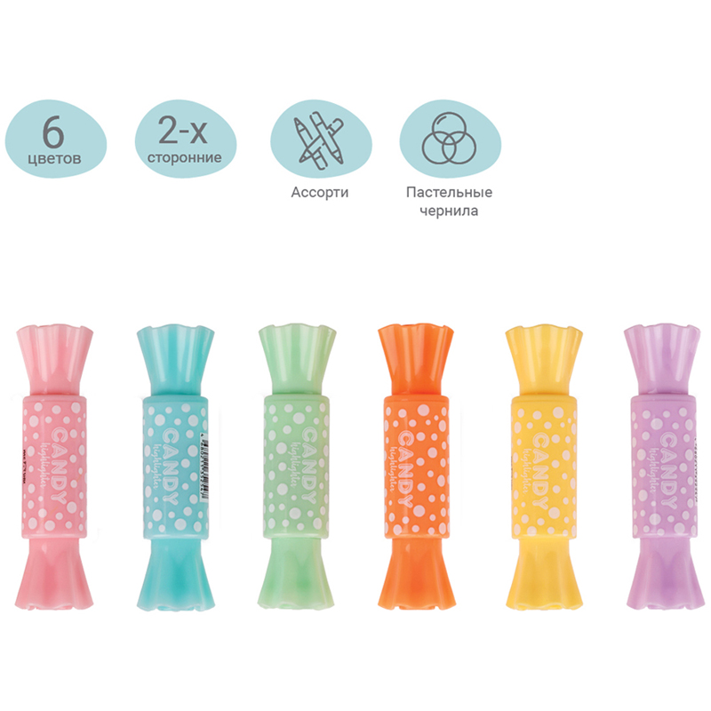 Двусторонний текстовыделитель с пастельными чернилами на водной основе ассорти. Длина линии до 200 метров. Пулевидный наконечник с толщиной линии 2 мм и скошенный с 4 мм. Цвет колпачка и корпуса соответствует цвету чернил. Упакованы в ПВХ банку по 30 шт.