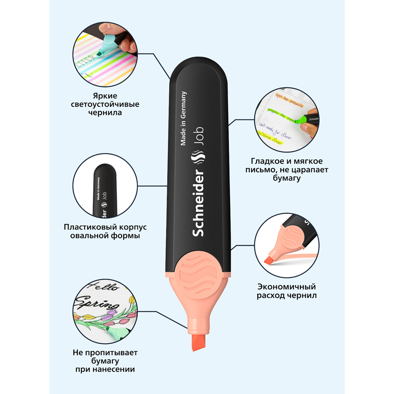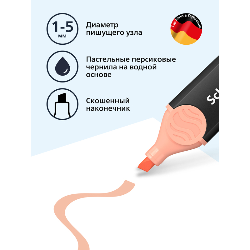 Письменные принадлежности Schneider разрабатываются и производятся только в Германии, их отличают функциональный дизайн, безупречное качество, надежность и экологичность. <br/>Универсальный текстовыделитель для различных типов бумаги. Скошенный наконечник позволяет проводить линии шириной 1-2 или 5 мм. Светостойкие чернила нежного пастельного цвета для самого важного в тексте.<br/>Сделано в Германии!