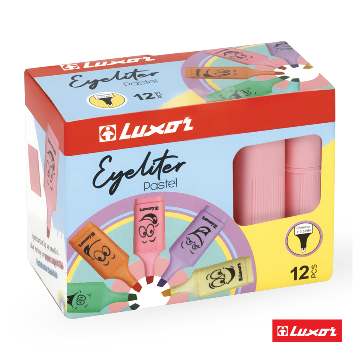 Текстовыделитель Luxor Eyeliter Pastel на водной основе представлен со скошенным пишущим узлом. Компактный размер 24*14,7 мм идеально подходит для пенала или сумочки. Пастельные чернила уменьшают нагрузку на зрение, не затемняют текст и подходят для выделения, эскизов, надписей. Текстовыделители нежно выделяют, быстро сохнут и не оставляют разводов и имеют привлекательный дизайн.