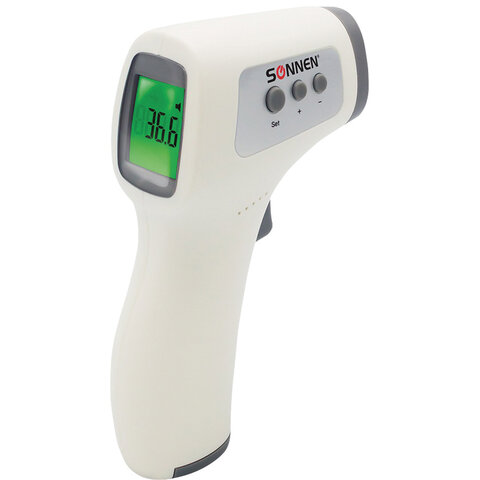 Бесконтактный инфракрасный термометр SONNEN NIT-2 определяет температуру тела человека, объекта или жидкости на дистанции и без контакта за 1 секунду.