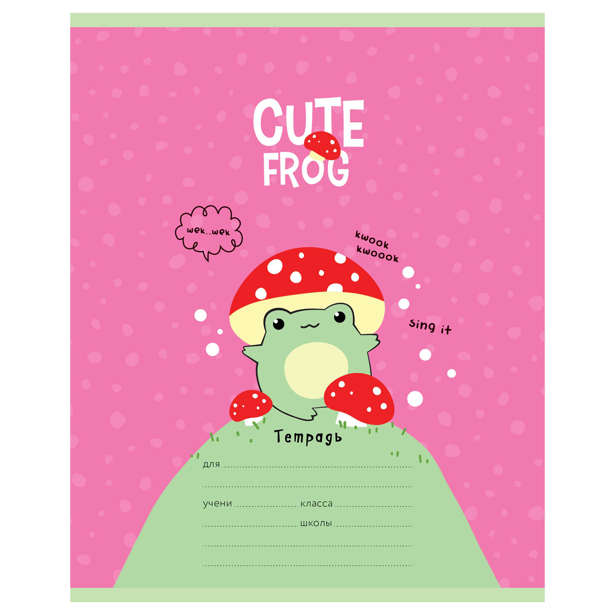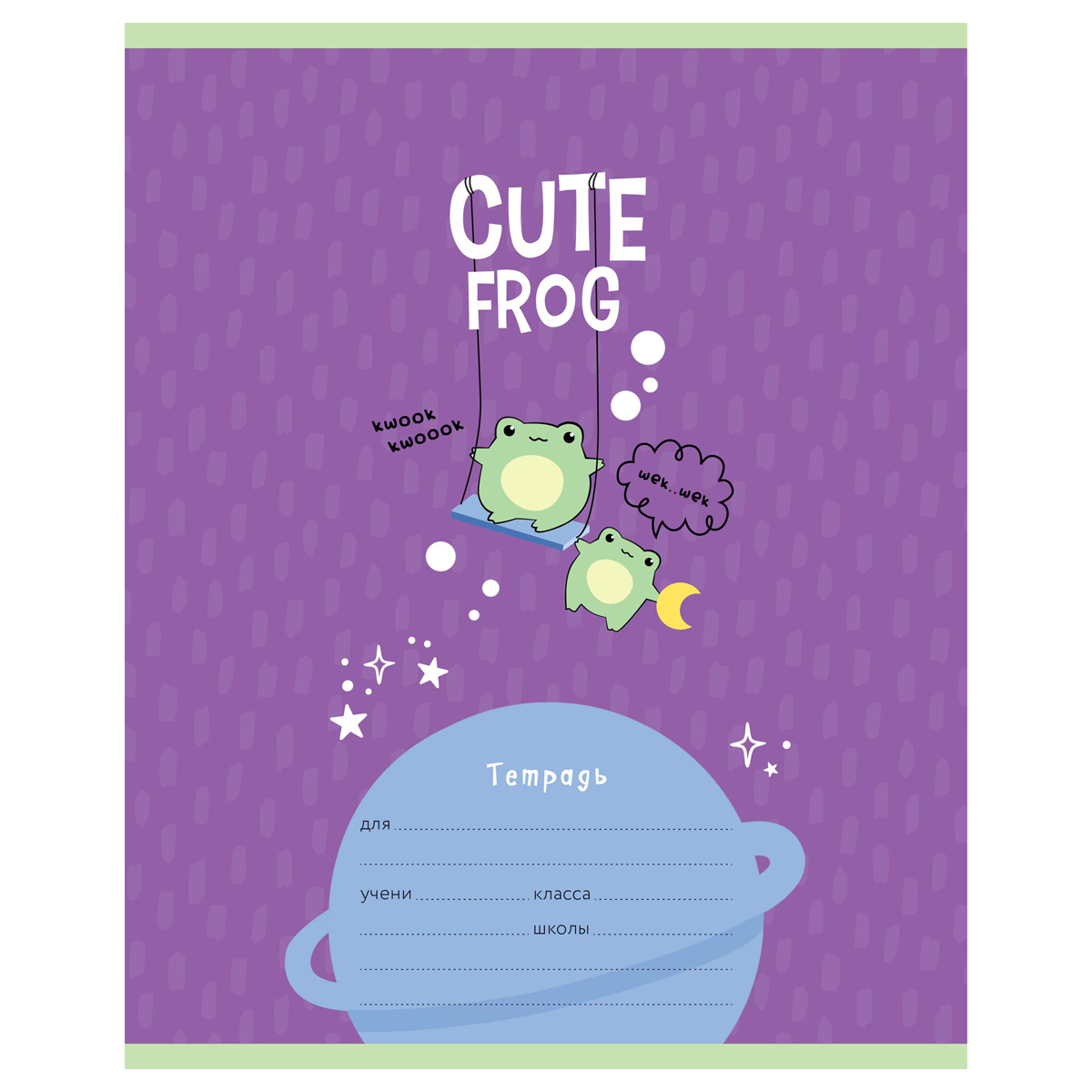 ВНИМАНИЕ: БОЛЬШИНСТВО ЭЛЕМЕНТОВ В НАБОРЕ МОГУТ ИМЕТЬ ОДИНАКОВЫЙ ДИЗАЙН.<br/>Тетрадь MESHU Cute frog формата А5 на скобе состоит из 12 листов. Внутренний блок – офсетная бумага плотностью 65 г/м², белизна – 100%, линовка – клетка с полями. Обложка тетради изготовлена из плотного чистоцеллюлозного картона со скруглёнными углами и ВД-лаком. Тетради с милым дизайном идеально подойдут для школьников любого года обучения.<br/>• Количество листов: 12;<br/>• Линовка: клетка с полями;<br/>• Формат тетради: А5;<br/>• Крепление: скрепка;<br/>• Материал обложки: чистоцеллюлозный картон.