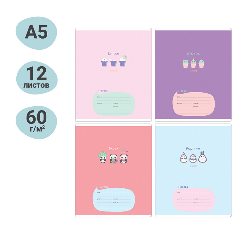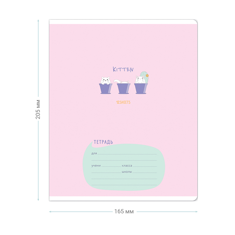 Формат А5. Внутренний блок – офсет 60-65 г/м², клетка с полями. Объем блока – 12л. Обложка – плотный чистоцеллюлозный картон, скругленные углы, ВД-лак.