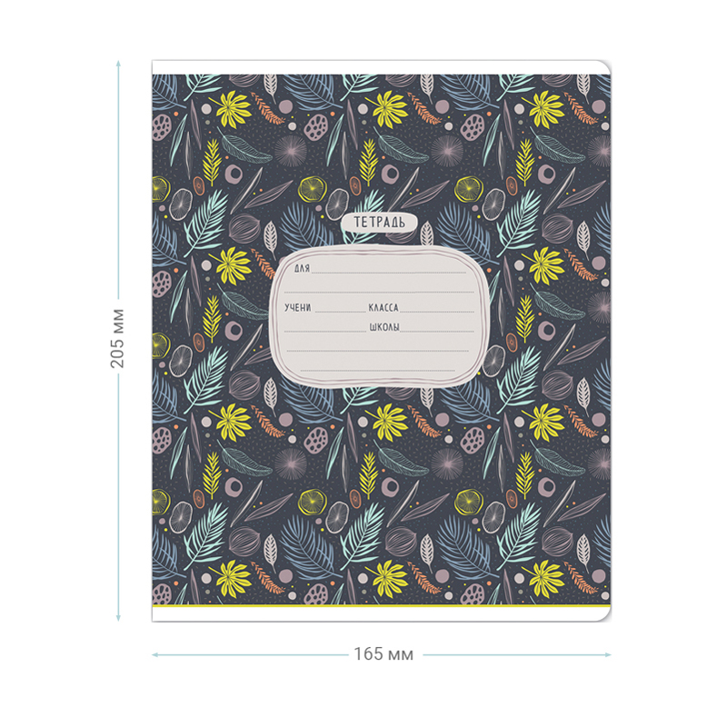 Формат А5. Внутренний блок – офсет 60 г/м², линия с полями. Объем блока – 12л. Обложка – плотный чистоцеллюлозный картон, скругленные углы, ВД-лак.