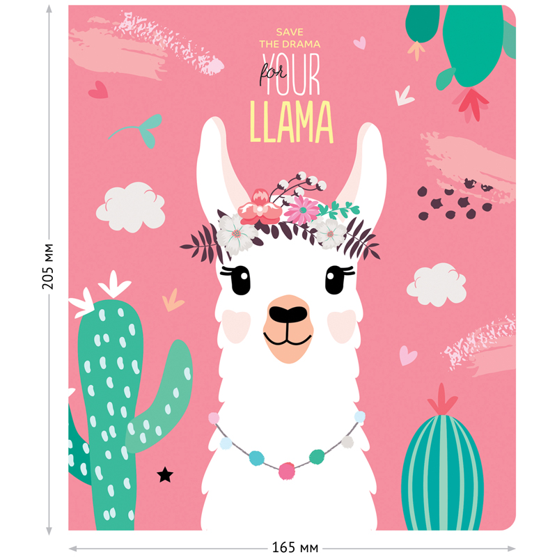 Общая тетрадь формата А5 (165*205мм) на скрепке состоит из 40 листов. Внутренний блок – это офсетная бумага плотностью 60 г/м², белизна 100%, линовка – клетка с полями. Оформление обложки в розово-голубых тонах с ламами привлечет внимание молодых девушек и девочек. Обложка тетради ArtSpace изготовлена из импортного целлюлозного мелованного картона.