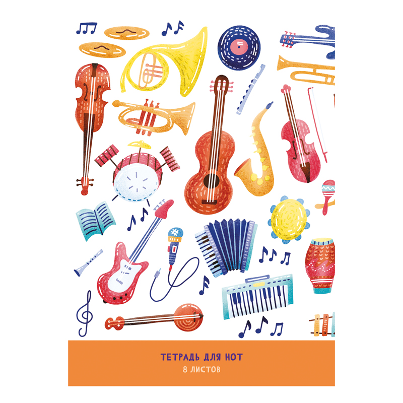 Тетрадь для нот ArtSpace «Веселая гитара» формата А4 (195*270 мм) на скрепке прекрасно подойдёт для записи нот любимых произведений. Тетрадь имеет вертикальную ориентацию. Внутренний блок состоит из 8 листов офсетной бумаги плотностью 65 г/м2 и 100% белизной. Обложка тетради выполнена из качественного целлюлозного мелованного картона. Яркие и интересные обложки тетрадей для нот ArtSpace с различными рисунками понравятся и мальчикам, и девочкам.