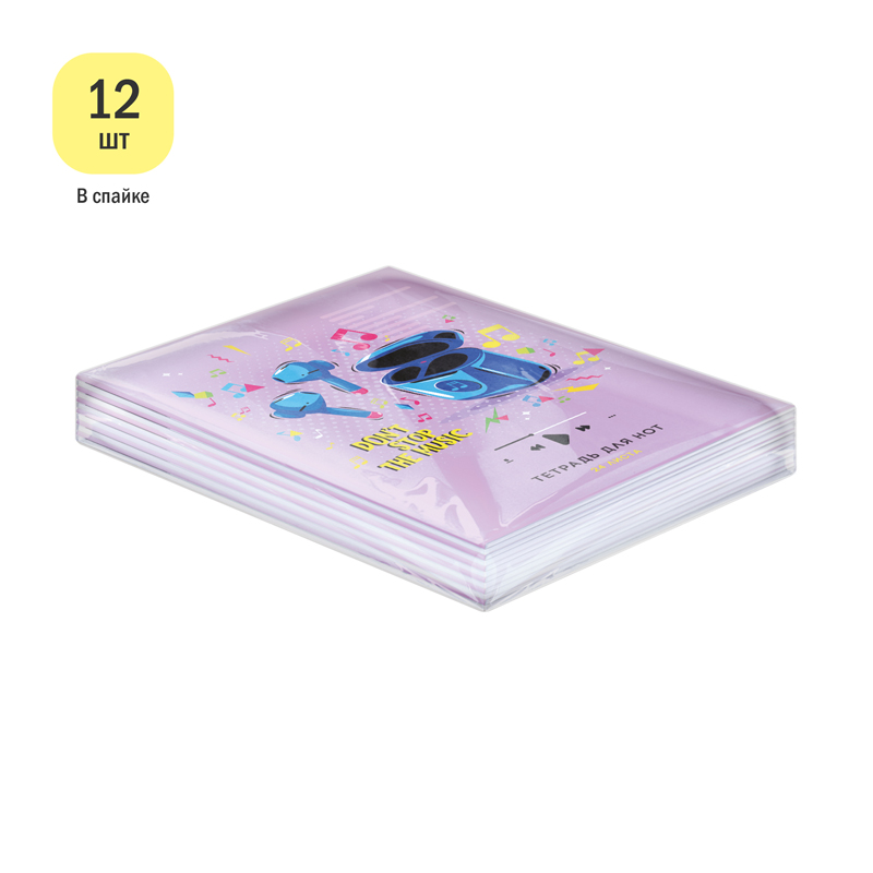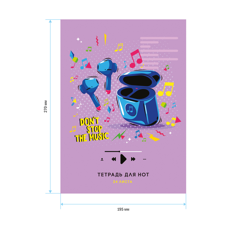 Тетрадь для нот ArtSpace Don’t stop the music формата А4 (195*270 мм) на скрепке отлично подойдёт для записи нот любимых произведений. Тетрадь имеет вертикальную ориентацию. Внутренний блок состоит из 24-х листов офсетной бумаги плотностью 65 г/м2 и 100% белизной. Обложка тетради выполнена из качественного целлюлозного мелованного картона. Стильные и забавные, яркие и сдержанные обложки тетрадей для нот ArtSpace с различными рисунками в музыкальной тематике понравятся и мальчикам, и девочкам.<br/>• Формат: А4 (195*270 мм);<br/>• Кол-во листов: 24;<br/>• Ориентация: вертикальная;<br/>• Крепление: скрепка;<br/>• Материал обложки: мелованный картон