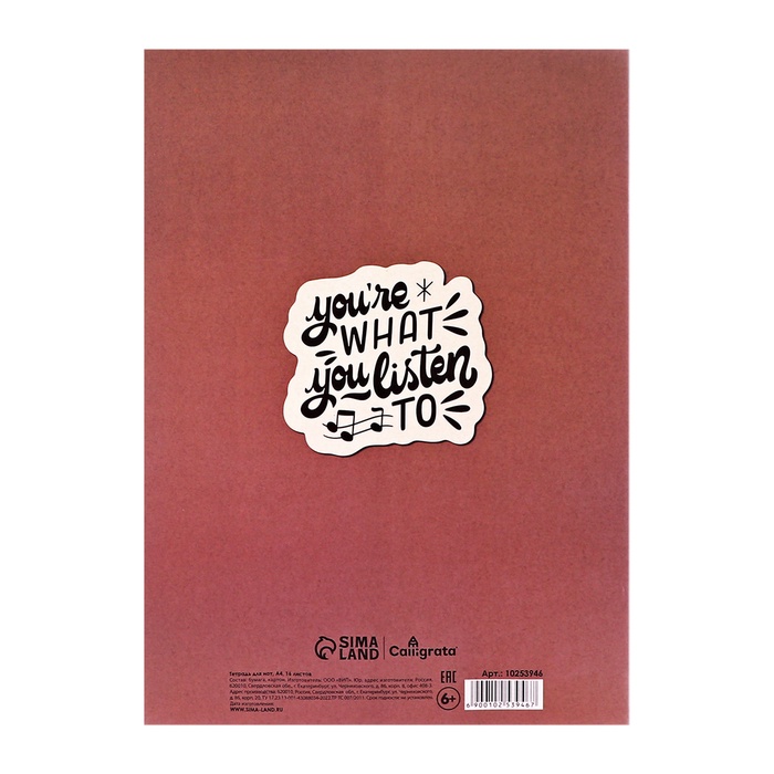 Тетрадь для нот А4 24 листа, на гребне "Музыка для души", обложка мелованный картон, справочная информация, блок 80 г/м2