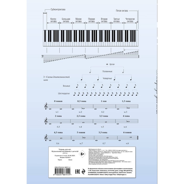 Тетрадь для нот А4 24 листа, на гребне "В стране нот", обложка мелованный картон, справочная информация, блок 80 г/м2
