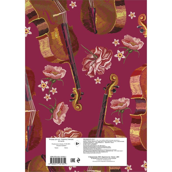 Тетрадь для нот А4 24 листа, на гребне "Музыка для души", обложка мелованный картон, справочная информация, блок 80 г/м2