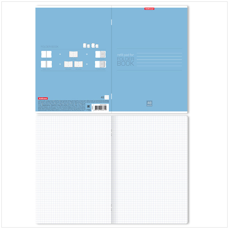 Тетрадь общая ученическая формата А4. Обложка из высококачественного мелованного картона плотностью 190 г/м2. В блоке 48 листов в клетку с полями. Бумага офсетная плотностью 60 г/м2. Цвет линовки - синий. Скругленные уголки обложки и блока. Тип скрепления - скоба. Тетради одного дизайна упакованы в термоусадочную пленку по 5 штук.