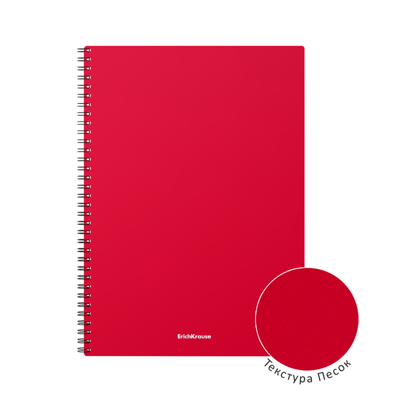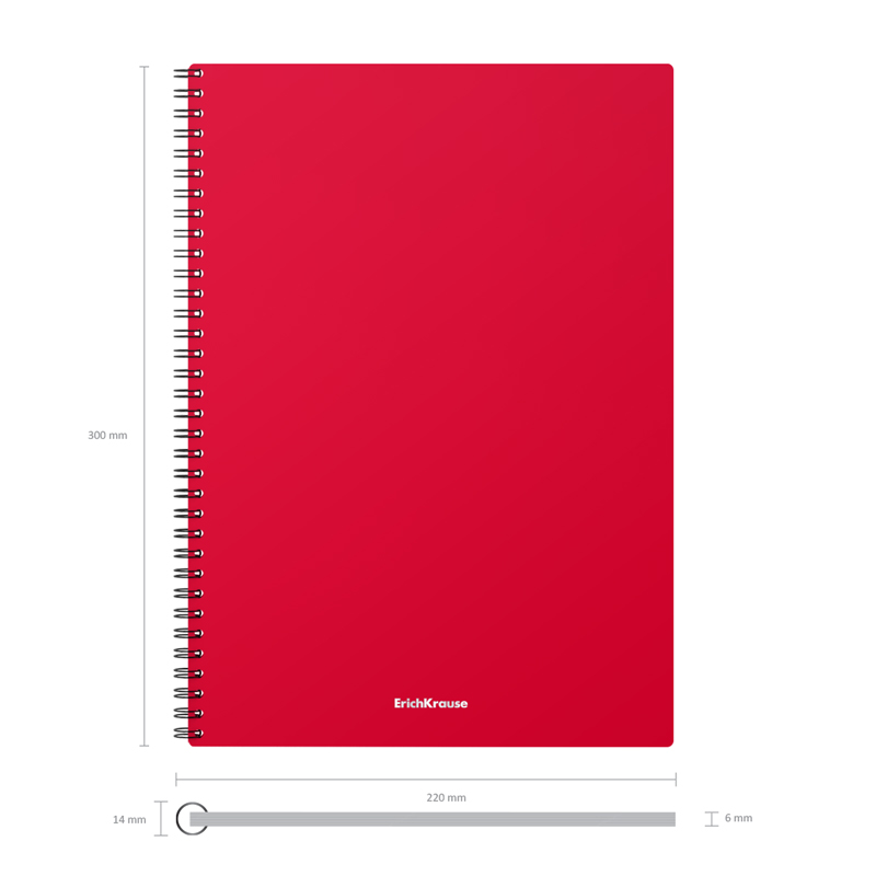 Тетрадь общая формата А4 (210*297 мм). Обложка из высококачественного износостойкого матового пластика с фактурой «песок». В блоке 60 листов в клетку. Бумага офсетная плотностью 60 г/м2. Цвет линовки — синий. Скругленные уголки обложки. Тип скрепления — спираль. Тетради упакованы в термоусадочную пленку по 2 штуки