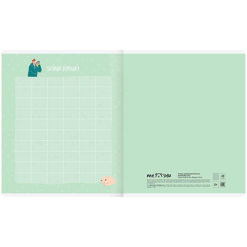 ВНИМАНИЕ: БОЛЬШИНСТВО ЭЛЕМЕНТОВ В НАБОРЕ МОГУТ ИМЕТЬ ОДИНАКОВЫЙ ДИЗАЙН.<br/>Предметная тетрадь MESHU серии Study for life станет идеальным помощником для студентов и школьников. Тетрадь по предмету «Физика» имеет справочный материал на отдельных листах. Формат тетради А5 (165*205 мм). Вид скрепления – скрепка. Внутренний блок выполнен из офсетной бумаги плотностью 60 г/м2. Тетрадь имеет блок в 48 листов. Линовка – клетка с полями. Обложка изделия выполнена из импортного целлюлозного картона. Яркие листы со справочной информацией являются продолжением дизайна обложки тетради. <br/>• Предмет: физика;<br/>• Справочная информация: есть;<br/>• Количество листов: 48;<br/>• Формат: А5 (165*205 мм);<br/>• Линовка: клетка с полями;<br/>• Вид крепления: скрепка;<br/>• Материал обложки: мелованный картон.