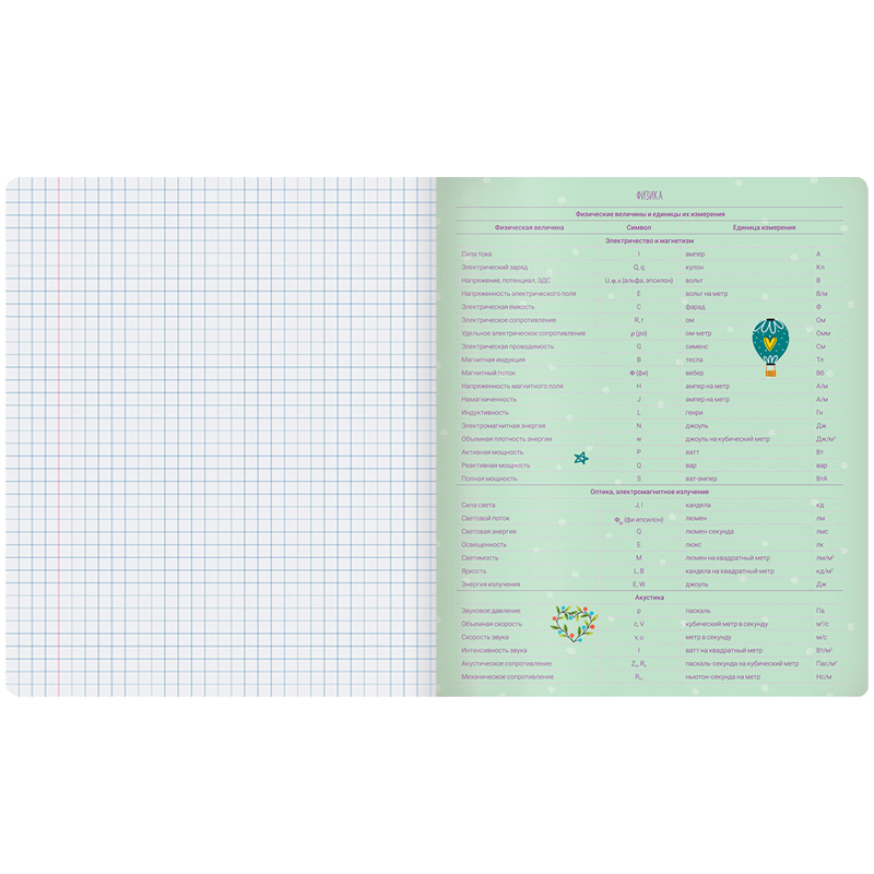 Предметная тетрадь MESHU серии Study for life станет идеальным помощником для студентов и школьников. Тетрадь по предмету «Физика» имеет справочный материал на отдельных листах. Формат тетради А5 (165*205 мм). Вид скрепления – скрепка. Внутренний блок выполнен из офсетной бумаги плотностью 60 г/м2. Тетрадь имеет блок в 48 листов. Линовка – клетка с полями. Обложка изделия выполнена из импортного целлюлозного картона. Яркие листы со справочной информацией являются продолжением дизайна обложки тетради.