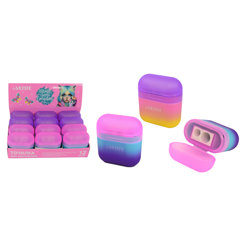 Точилка " deVente " Miracle 50*52*55мм 2 отверстия с контейнером, ассорти, картонный дисплей