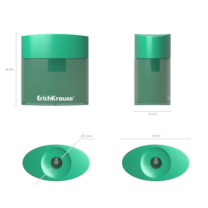 Точилка пластиковая Berlingo "Fuze Ergo" 1 отверстие, контейнер, зеленая, блистер