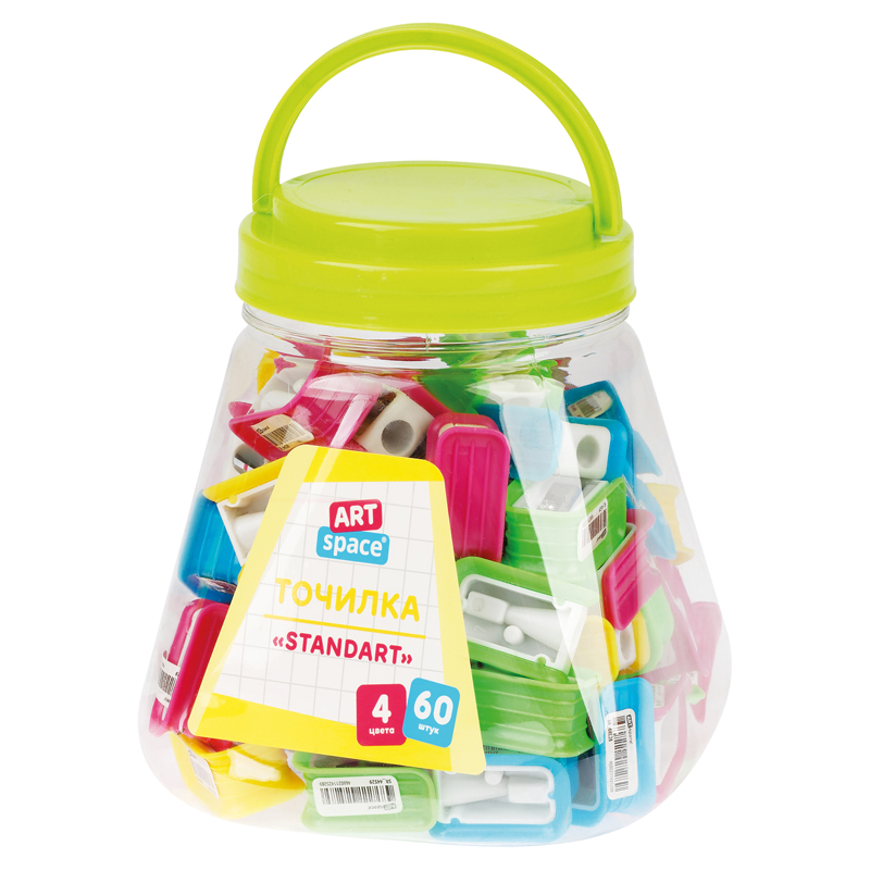 Точилка пластиковая ArtSpace Standard идеально подходит для затачивания карандашей. Размер изделия – 30*23*17 мм. Диаметр отверстия – 8 мм. Точилка удобной эргономичной формы выполнена из высококачественного пластика. Представлено ассорти из 4 ярких дизайнов. <br/>• Материал корпуса: пластик;<br/>• Диаметр отверстия: 8 мм.