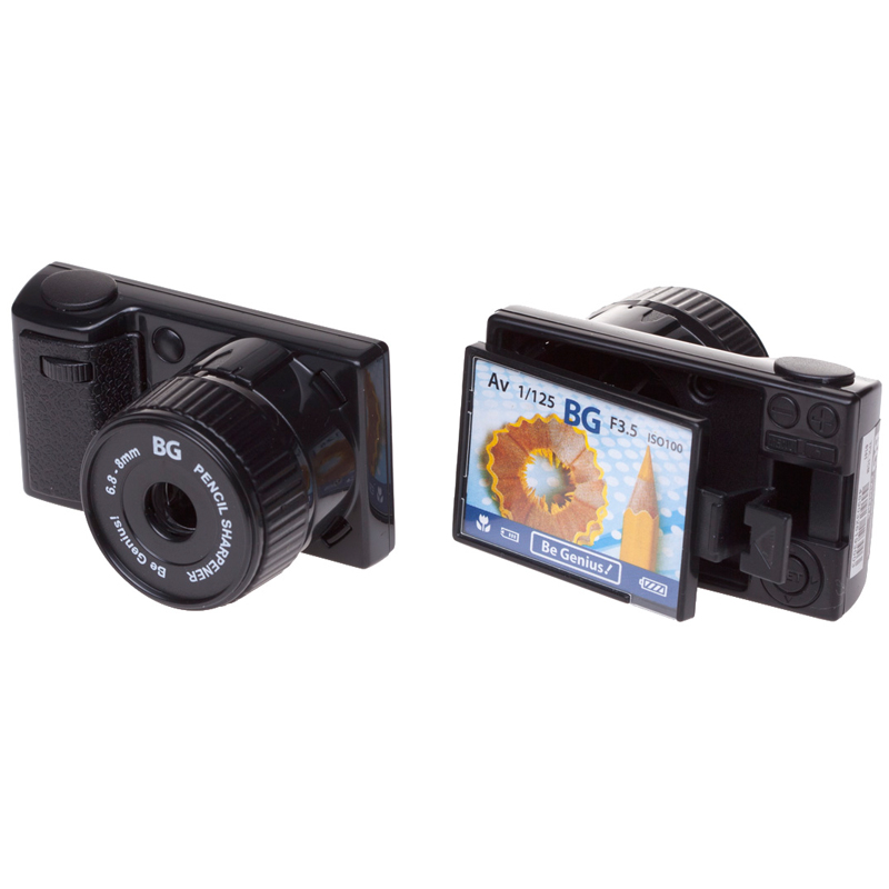 Точилка ручная BG "CAMERA" имеет одно отверстие диаметром 8 мм для карандашей обычной толщины. В оригинальном пластиковом корпусе находятся лезвие из высококачественной стали и контейнер для стружки. Имеется заглушка для отверстия, а от поломки грифеля защищает специальный стоппер.