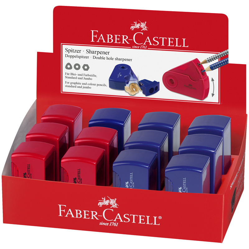 Точилка пластиковая Sleeve легендарного немецкого производителя Faber-Castell отлично подходит для затачивания цветных и чернографитных карандашей. Точилка имеет 2 отверстия – для затачивания карандашей стандартного размера и Jumbo, и плотно закрывающийся контейнер для сбора стружек. Лезвия изготовлены из высококачественной стали с идеальной заточкой. Цвет корпуса ассорти: красный, синий.