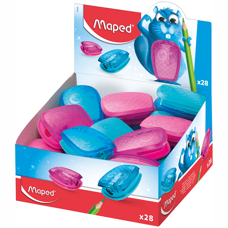 Пластиковая точилка для карандашей. В ассортименте два цвета - голубой и розовый
