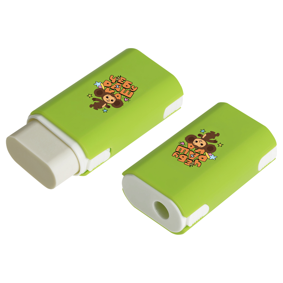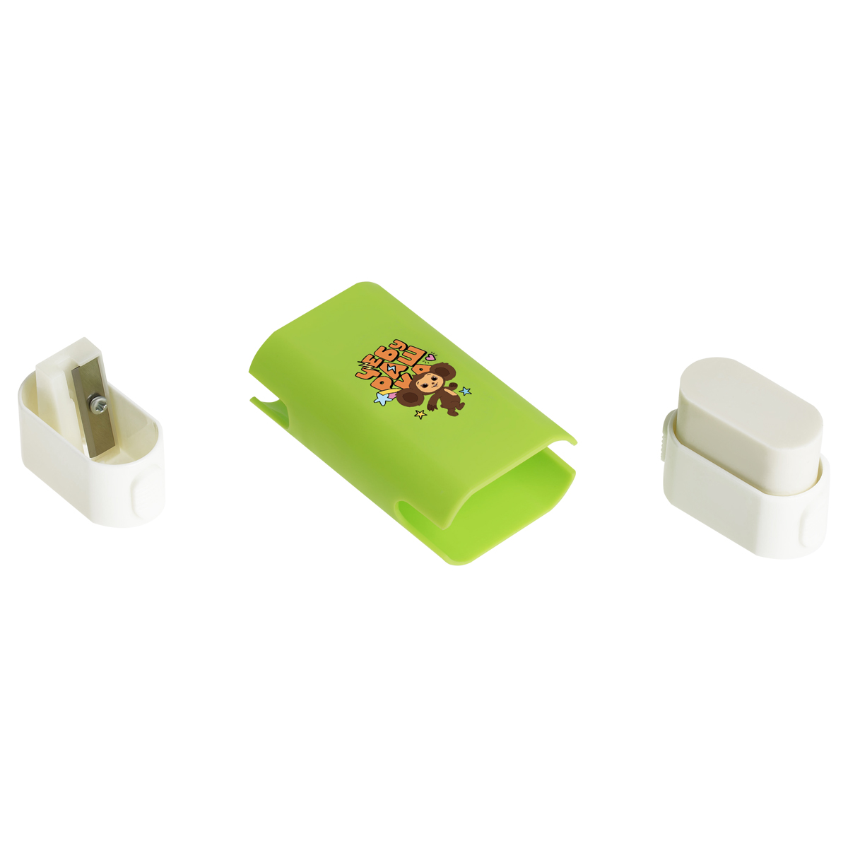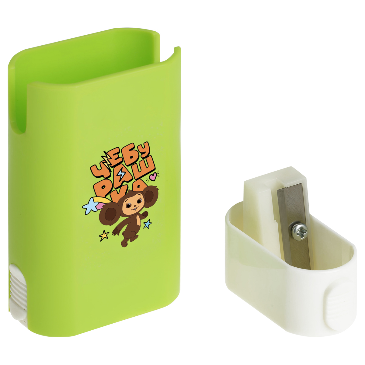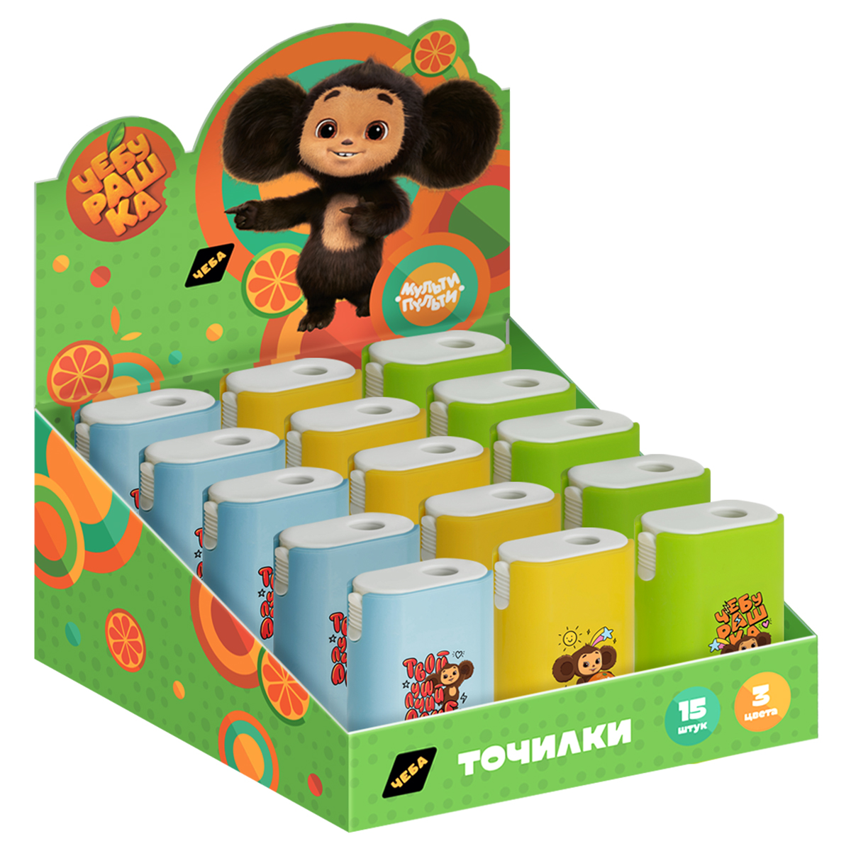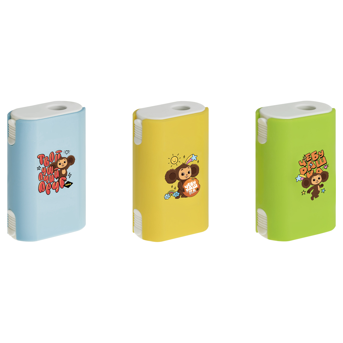 Пластиковая точилка «Мульти-Пульти» серии «Чебурашка» отлично справится с заточкой карандашей. Точилка содержит контейнер для стружки и одно отверстие для заточки – для стандартных карандашей диаметром до 8 мм. Точилка снабжена качественным ластиком, расположенным под нижней крышкой. В наборе представлены 3 варианта точилок с индивидуальным эмоциональным и цветовым оформлением. Вид минимальной групповой упаковки - шоу бокс.