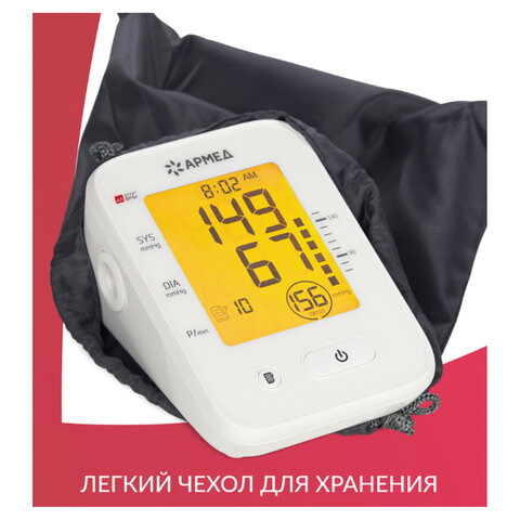 Тонометр поставляется в легком чехле-сумке, который обеспечит долгую сохранность прибора и удобное хранение.