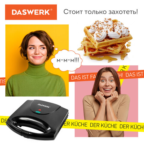 Электрическая вафельница DASWERK подходит для приготовления венских, бельгийских, овощных, сырных и других видов вафель.