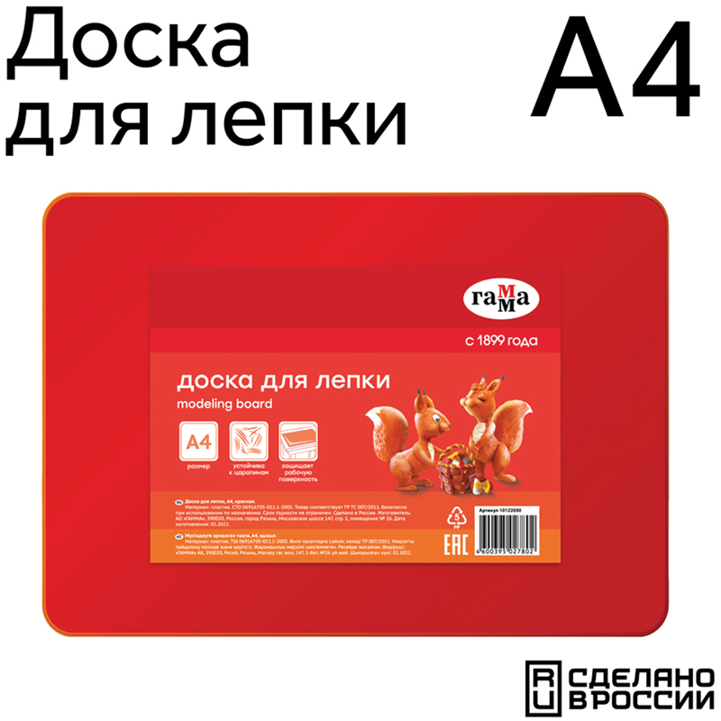 Доска для лепки ГАММА формата А4 станет лучшим другом на уроках труда и занятиях творчеством дома. Она предназначена для лепки из пластилина и надежно предохраняет рабочую поверхность от загрязнений, имеет закругленные углы для безопасности. Доска для лепки изготовлена из пластика красного цвета, материал устойчив к царапинам. Упакована в термоусадочную пленку с ярким вкладышем. Доска для лепки поможет ребенку развить творческие способности и мелкую моторику.<br/>• Формат: А4;<br/>• Материал: пластик;<br/>• Цвет: красный.