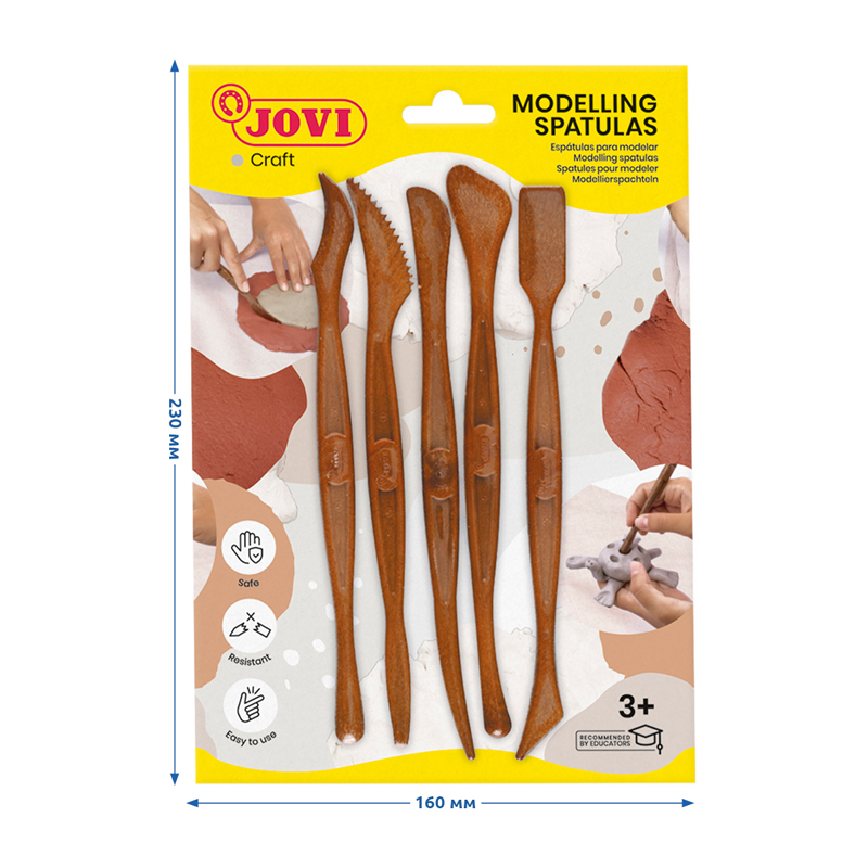 Двухсторонние пластиковые стеки для лепки и моделирования имеют российскую сертификацию для маленьких детей старше трех лет. В наборе из 5 стеков содержится 10 фукциональных инструментов, которые незаменимы при работе с пластилином и пастами для моделирования. С их помощью материал удобно отрезать, придавать ему нужную форму и текстуру. Стеки прекрасно подходят не только для лепки объемных фигур, но и для рисования пластилином по листу бумаги или картона. Страна производства Испания.
