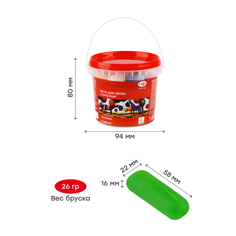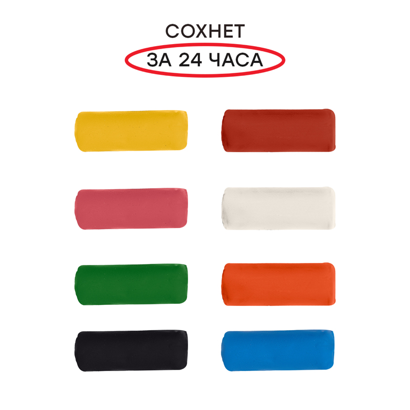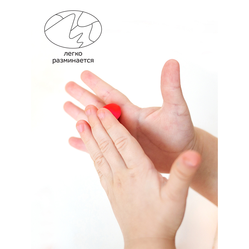 У теста мягкая текстура – оно легко разминается и хорошо держит форму. Цвета можно смешивать между собой, чтобы получить новые оттенки. Тесто застывает за 24–72 часа, а готовой поделкой можно играть. Тесто для лепки безопасно и не токсично. Набор теста упакован в пластиковую банку с ручкой. Каждый брусок в индивидуальной упаковке.
