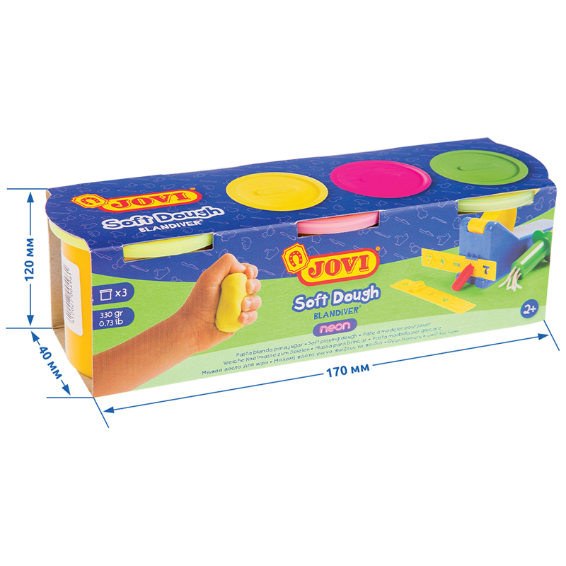 Blandiver - мягкая игровая детская паста для лепки с малышами (аналог соленого теста). Сертифицирована старше 3-х лет. Натуральный продукт на основе муки, соли и воды. Безвредная, но с неприятным соленым вкусом. Супер мягкая, очень свежая по текстуре,приятная на ощупь, не липкая. Пищевые красители, исключительно безопасный состав. Не имеет химического запаха. Паста легко принимает нужную форму, идеально подходит для маленьких слабых детских рук и предназначена для знакомства ребенка с лепкой и создания простых фигурок руками или с помощью формочек и экструдеров. Помогает развивать мелкую моторику, воображение и интуицию ребенка. Затвердевает на воздухе, сохраняет яркий цвет. Три особо ярких неоновых цвета разбудят фантазию малыша и помогут ему узнать цвета и оттенки - лимонный, розовый, салатовый по 110 гр в банках емкостью 125 мл. После высыхания паста легко снимается влажной губкой или щеткой с одежды, ковров и др. поверхностей, не оставляя следов. Страна производства Испания.