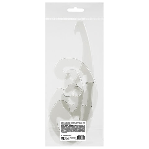 Инструмент позволяет относительно точно строить участки таких кривых, как эллипс, парабола, гипербола, различные спирали. Набор прочный и удобный в использовании. Индивидуальная упаковка с европодвесом.