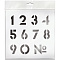 Предназначены для создания надписей информирующего характера.<br/> Подходят для использования на любых ровных поверхностях.<br/> Благодаря химической устойчивости трафарета возможно использование любого типа декоративного структурного материала или краски для нанесения информации.<br/>Высота цифр 40,0 мм.