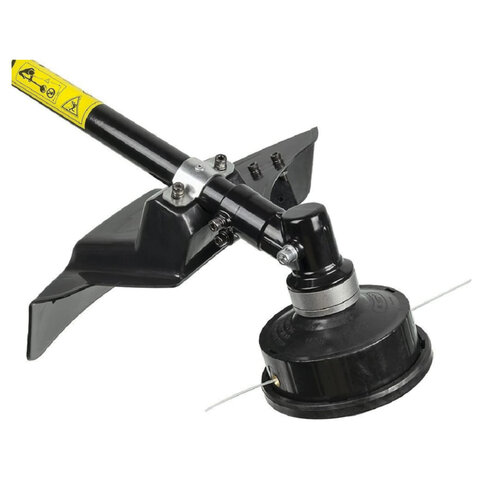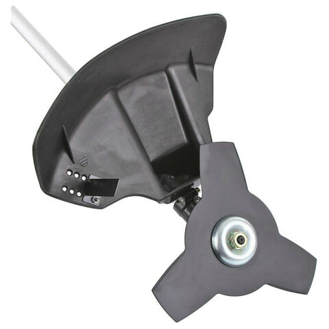 Триммер оснащен двумя режущими элементами. Леска эффективно срезает молодую мягкую траву, а трехлопастной нож справится с жестким сухостоем и плотными зарослями. Он отбрасывает срезанную поросль в сторону, не допуская налипания и наматывания остатков на вал штанги. Регулировка ширины кошения от 35 до 42 см обеспечит удобную работу в труднодоступных местах, например, вокруг цветочных клумб или вдоль забора.