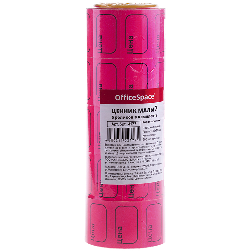 Ценник-лента. В упаковке 5 роликов по 200 штук. Размер наклейки - 3х2 см. Цвет - малиновый.