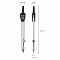 Циркуль длиной 135 мм имеет несгибаемые штанги. Изготовлен из металла, дополнительный цвет элементов - черный.